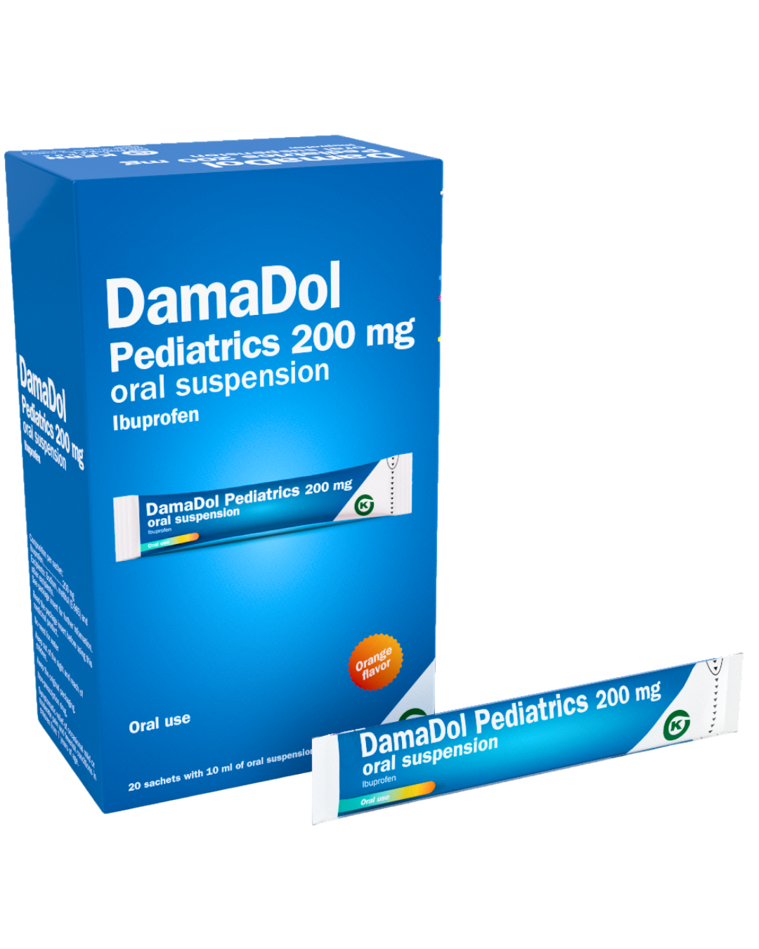 Përbërësit: ibuprofen, benzoat natriumi (E-211), acid citrik anhidrik (E-330), citrat natriumi (E-331), sakarina natriumi (E-954), celulozë mikrokristaline (E-460i), ksantan çamçakëz (E-415), shurup maltitol (E-965), aromë portokalli, glicerinë (E-422), polisorbat 80 dhe ujë i distiluar.